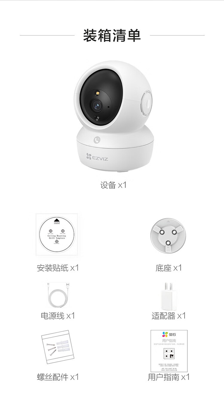 萤石/EZVIZ CS-H6c 监控摄像机 wifi联网带网口