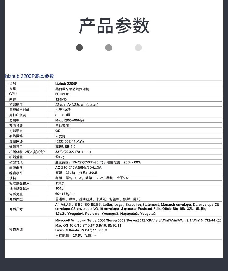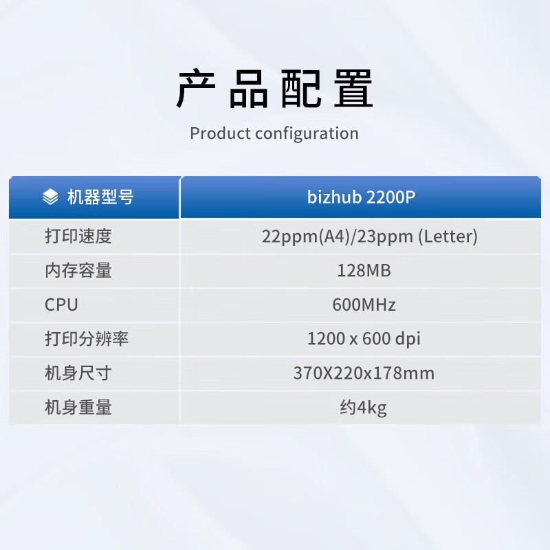 柯尼卡美能达/KONICA MINOLTA 2200P A4 黑白打印机 黑白激光打印机