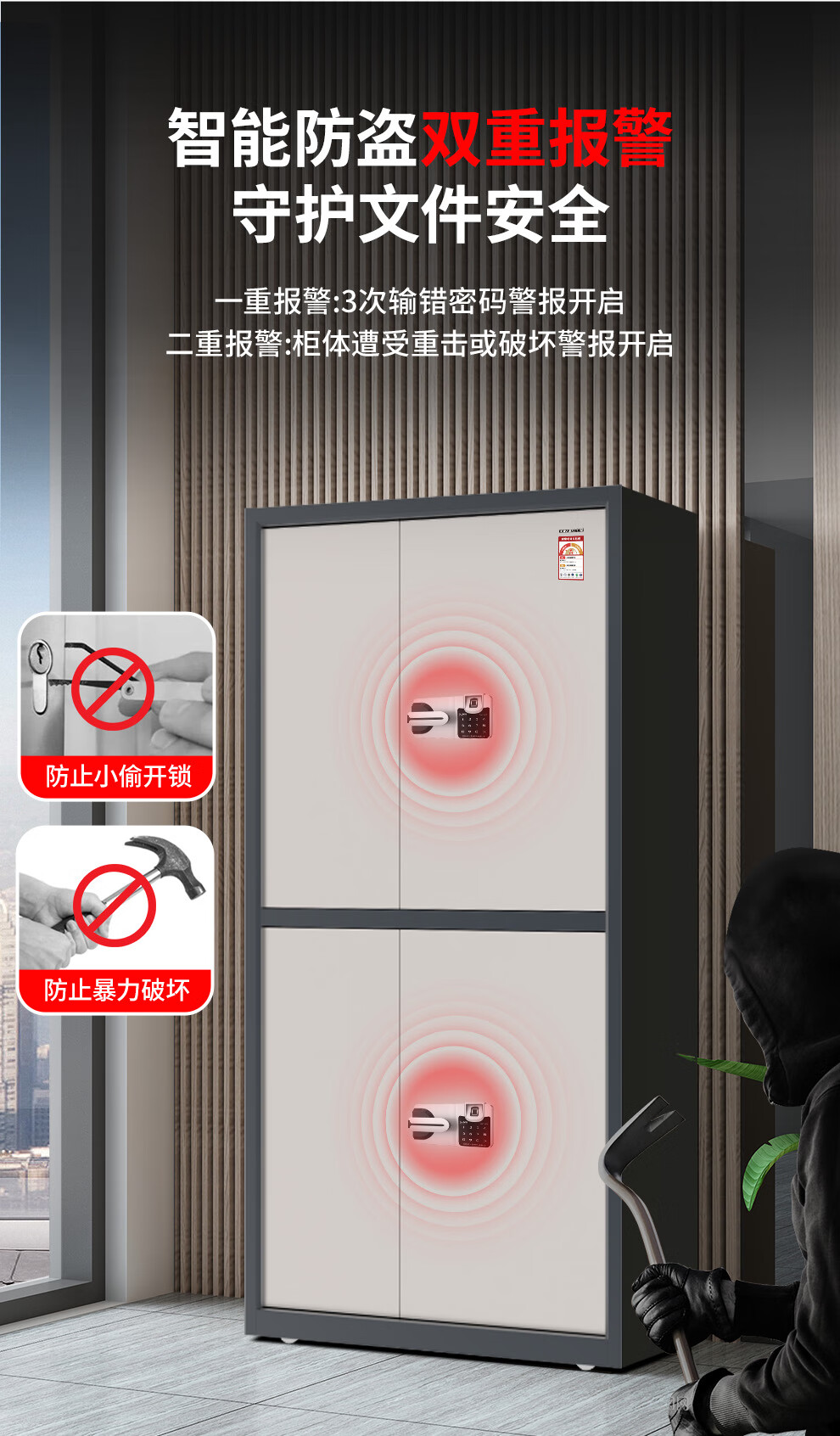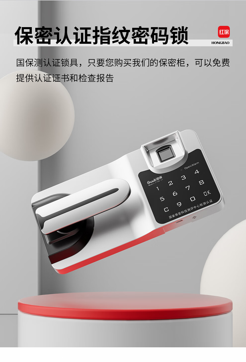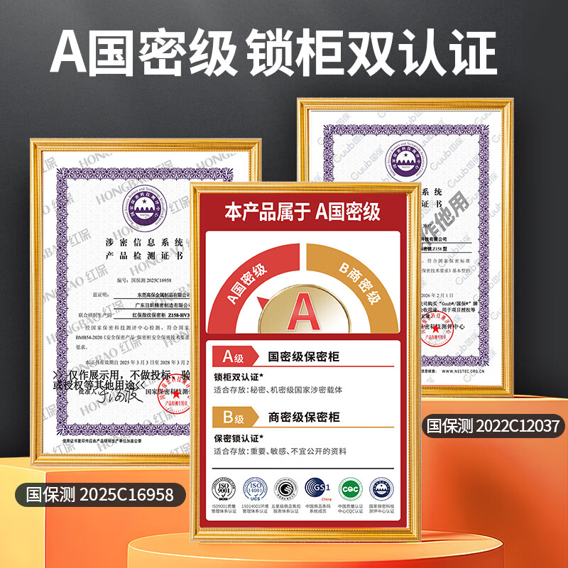 红保保密柜指纹密码文件柜国家保密认证资料档案办公室储物柜Z158-HV3