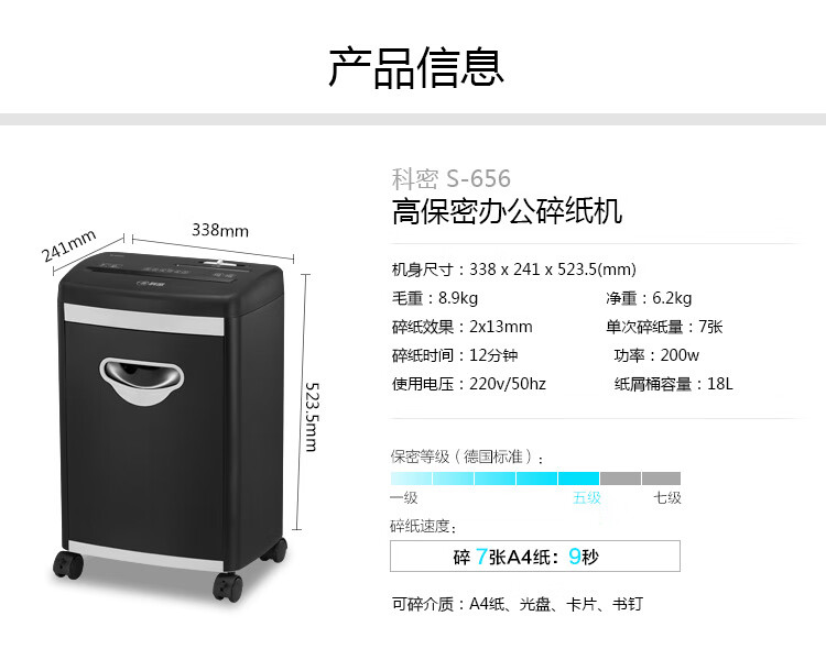 科密/Comet S-656 碎纸机 5级保密